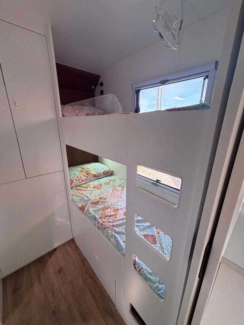 From weekend escapes to the big lap, the Atlas Bunk is designed to feel like home no matter how far you roam. A smart, family-friendly layout gives parents privacy and kids their own dedicated bunk beds, so everyone has space to unwind after a day exploring.